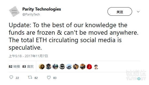 原标题:以太坊钱包Parity被爆安全漏洞,致价值2.8亿以太坊被冻结 11月8日坏消息榜 关注