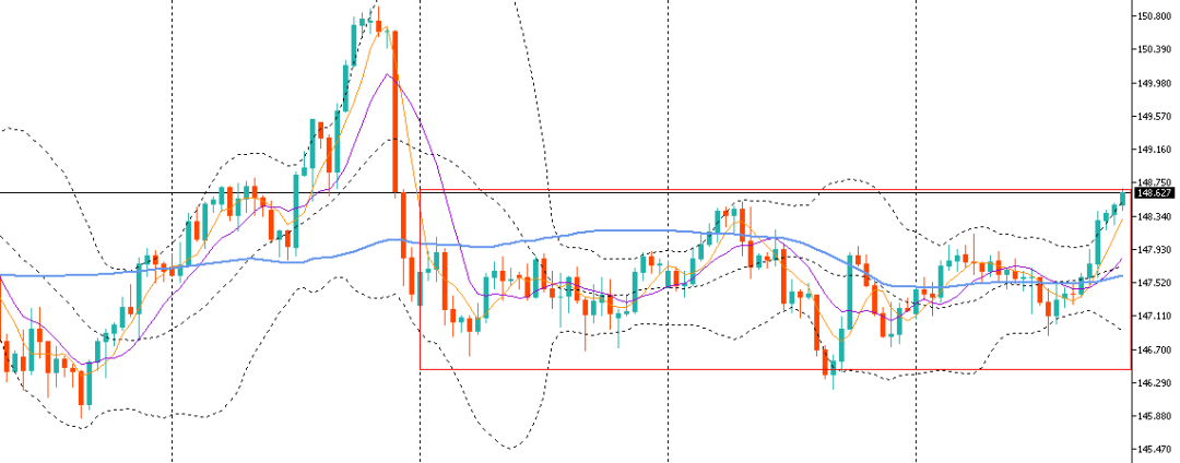 美日强势拉升,上破关键压力148.50,短线趋势彻底转强,多单可继续持有,后市有望挑战149,149.50。