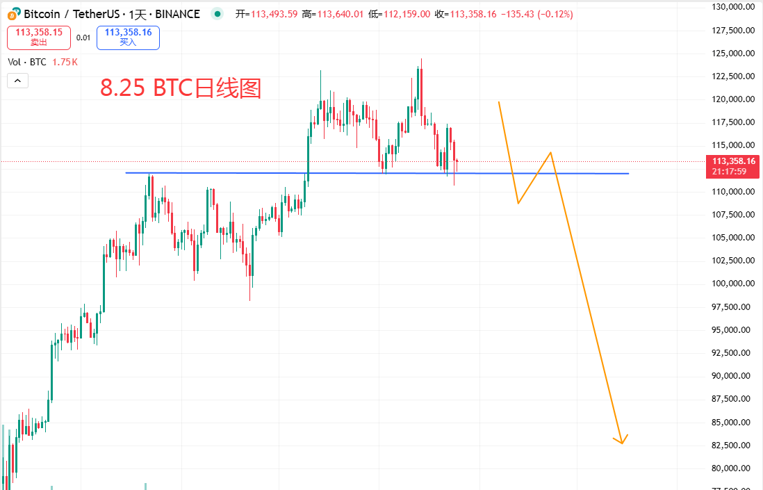 综上,价格插针了,虽然没有实体跌破112000区域,但周线MACD已形成死叉,这是个非常不好的信号,上轮牛市就是MACD高位持续背离后形成死叉结束,所以这个信号不能忽略,主力还没有完全派发完成,但目前就是明显的派发区,112000多次测试均有反弹,二次测试是牛市结束最后的动作,中长线附近,但不一定给到,给到可尝试,日线为确认信号,整体中长线反弹空为主,日内短线有反弹回补缺口需求,缺口在11,日内短线上看反弹