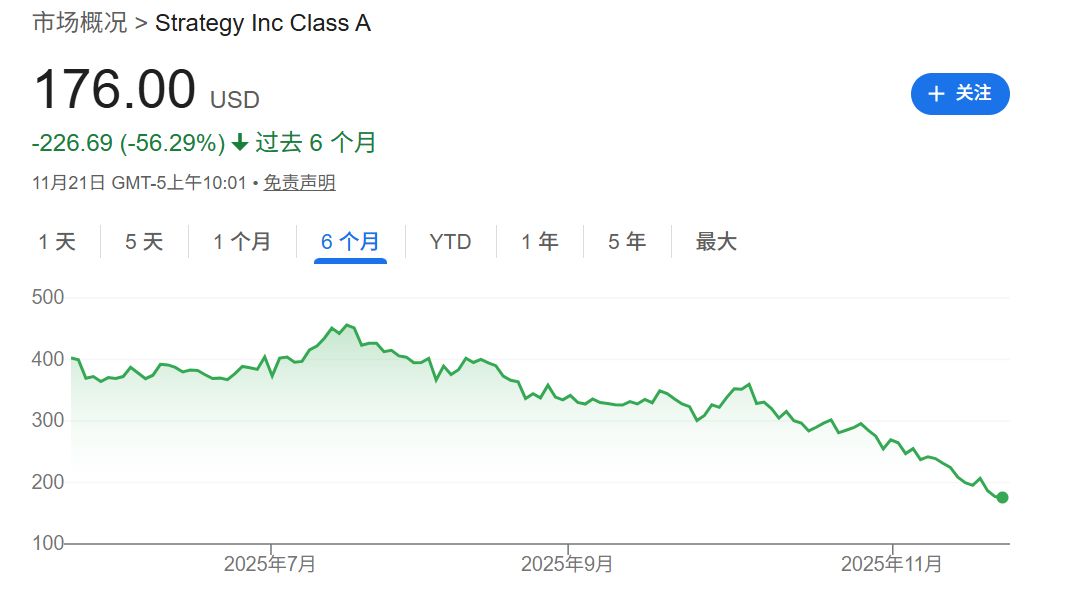 11月21日比特币短线美元关口,Strategy公司股价盘前跌近5%,自历史高点以来已大跌67%。摩根大通警告,Strategy或被移出MSCI指数,恐致28亿美元资金流出。Strategy的“增长飞轮”随比特币承压而减弱,市场悲观情绪浓厚。
