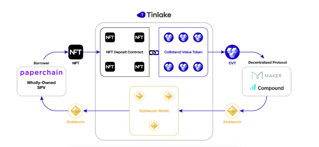 而后,Paperchain 将该笔应收账款打包发送至 Tinlake 平台,生成具有法律效应的非同质代币(NFT);再将 NFT 转化生成带息 ERC20 代币,Paperchain 可以设定该代币的收益率以及发行数量。