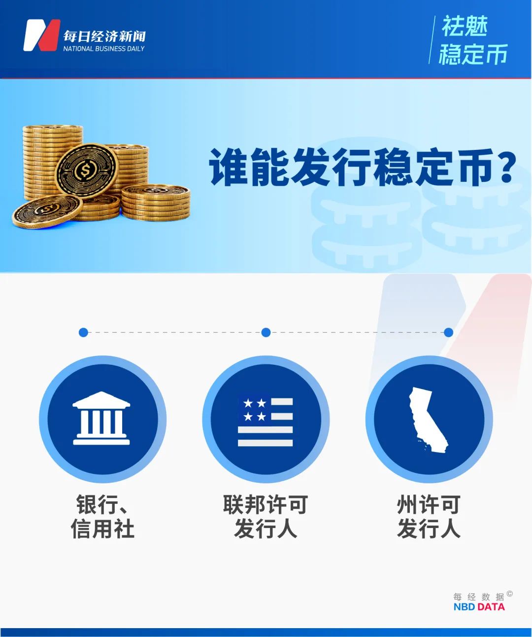 法案规定,未来稳定币的发行人主要被限定在两类:一类是“受保的存款机构”,即那些已经获得联邦认可的银行和信用社;另一类是“受监管的非银行机构”,它们需要在联邦或州层面,专门申请并获得稳定币的发行许可。