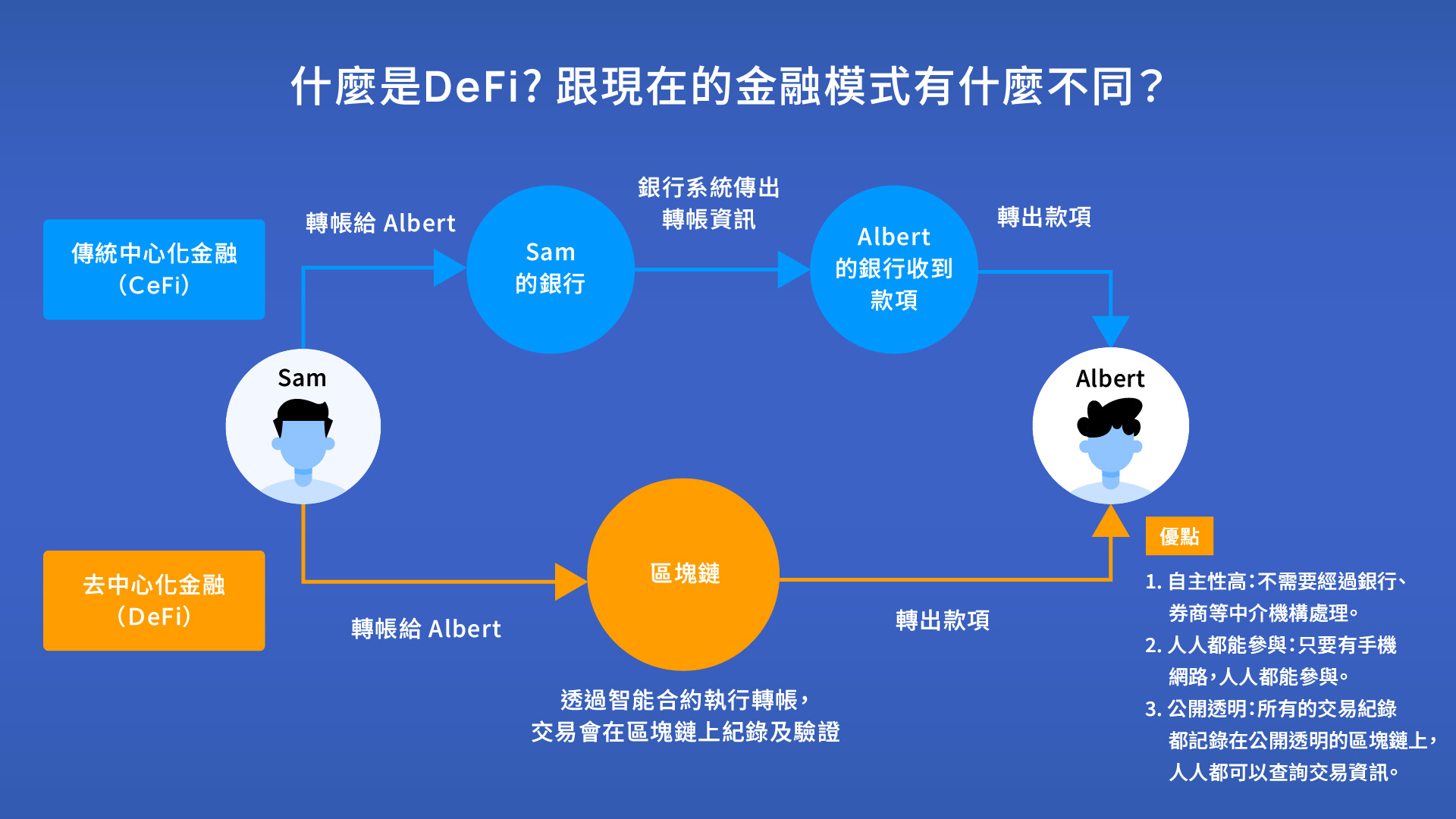 只需依靠程式码,无需银行、政府等中心化机构介入,就能自动完成交易、借贷、转账的「去中心化金融」(Decentralized Finance,DeFi),你知道是什么吗?