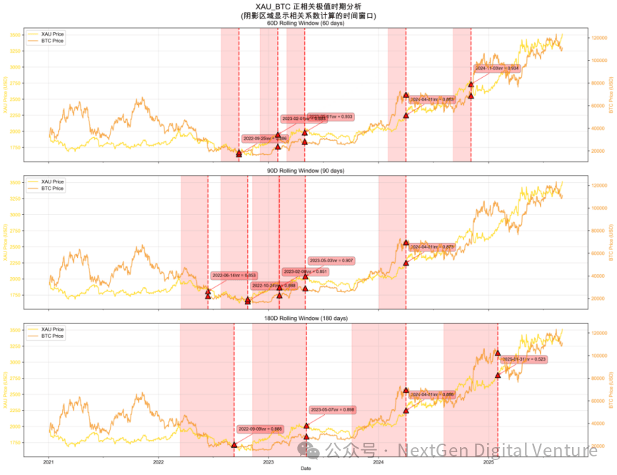 从 2021 年至今,BTC 与黄金走势高度一致,说明宏观流动性和货币政策是两者的共同驱动。